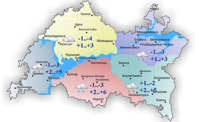 Как сообщается на сайте Управления по гидрометеорологии и мониторингу окружающей среды РТ, максимальная температура днем по Татарстану составит от +1°С до +6°С.